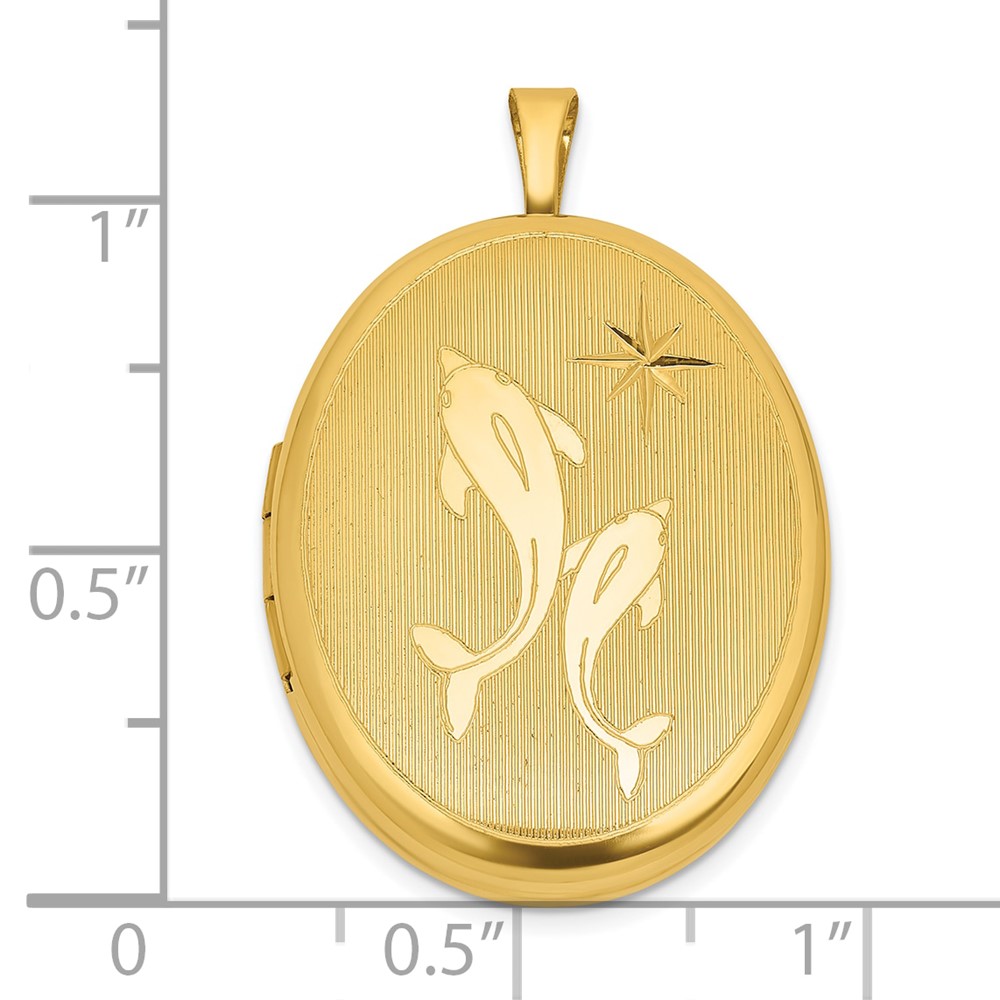 Sterling Silver Gold-plated Polished Front/Brushed Back Two Dolphins 20mm Oval Locket