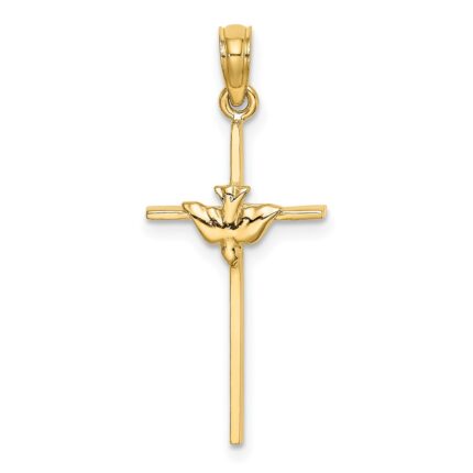 Sterling Silver Platinum-plated Polished Cut-out Dove Cross Pendant