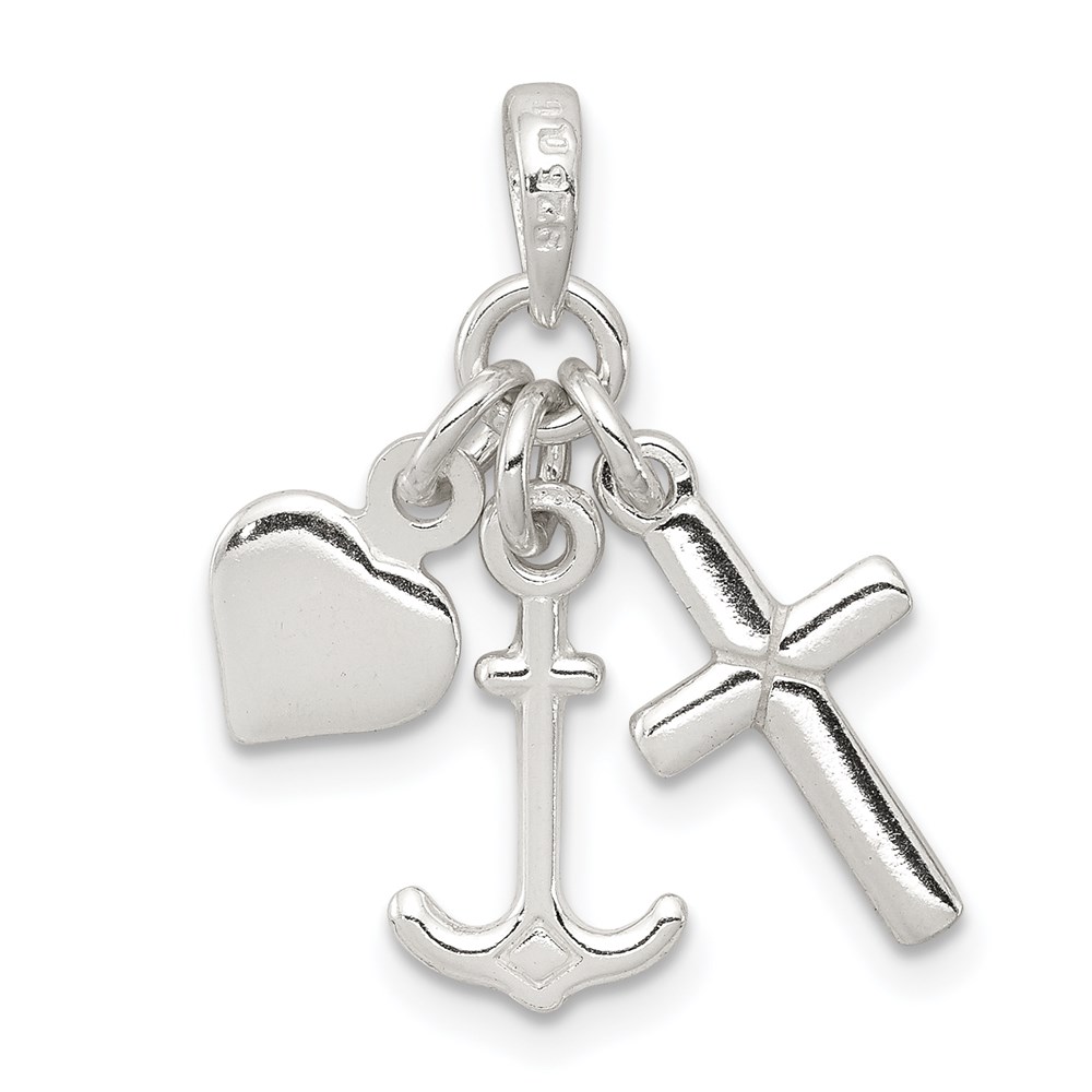 Sterling Silver Polished Anchor Heart and Cross Pendant