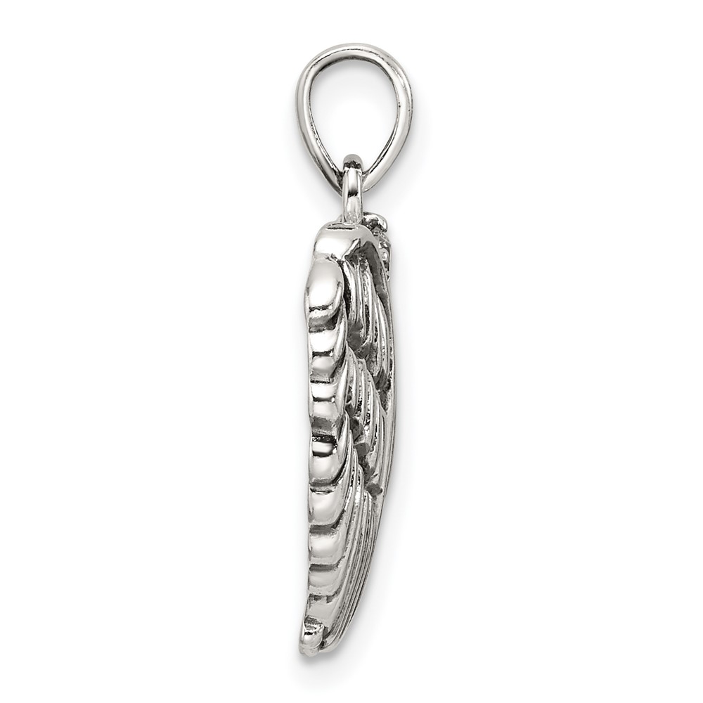 Sterling Silver Polished and Antiqued CZ Angel Wing Heart Pendant