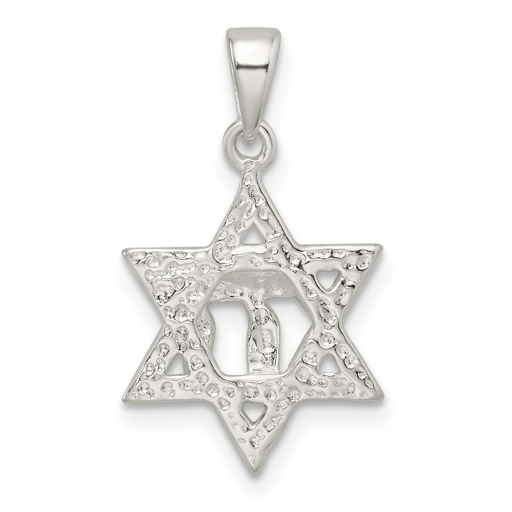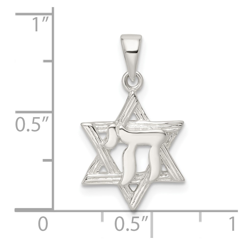 Sterling Silver Polished and D/C Star of David w/Chai Pendant