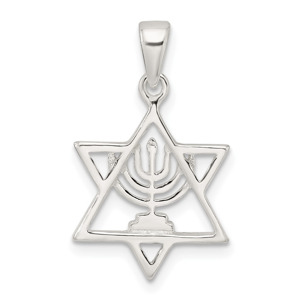 Sterling Silver Polished and D/C Star of David w/Menorah Pendant