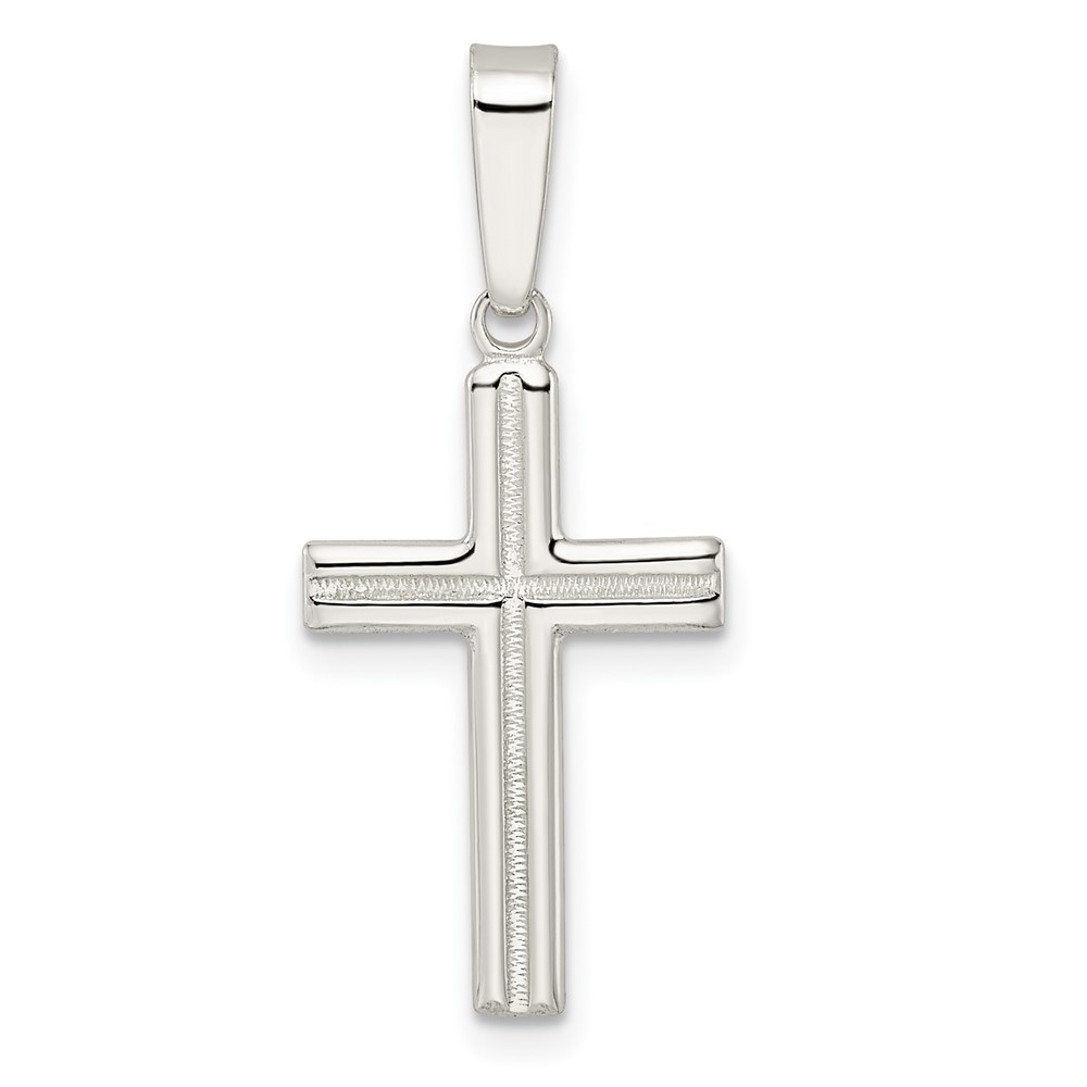 Sterling Silver Polished and Satin Center Latin Cross Pendant
