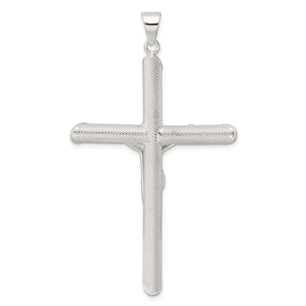 Sterling Silver Polished and Texture Tube Crucifix Cross Pendant