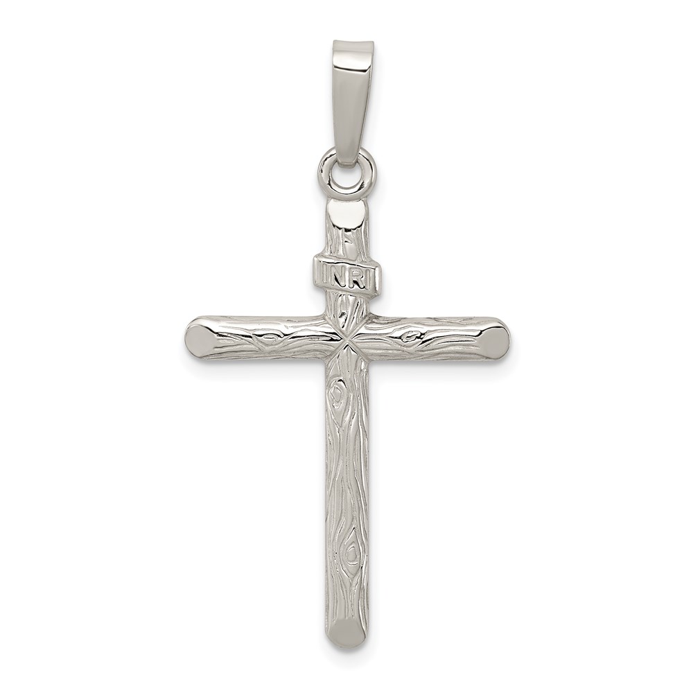 Sterling Silver Polished and Textured INRI Cross Pendant