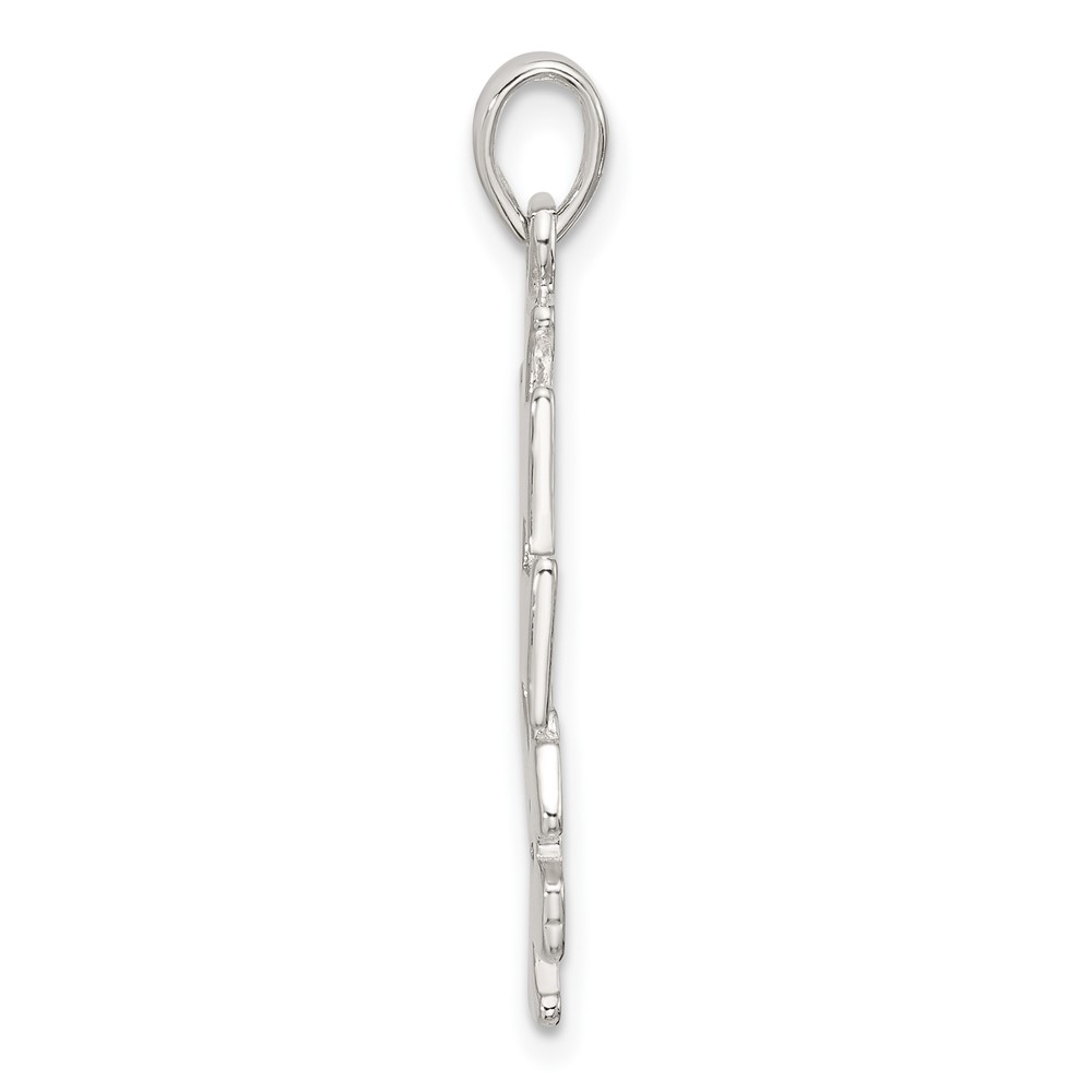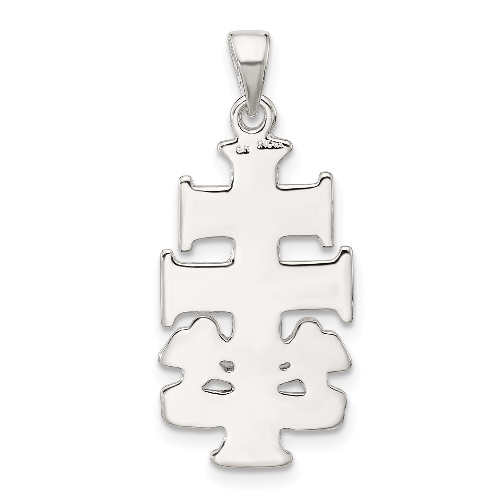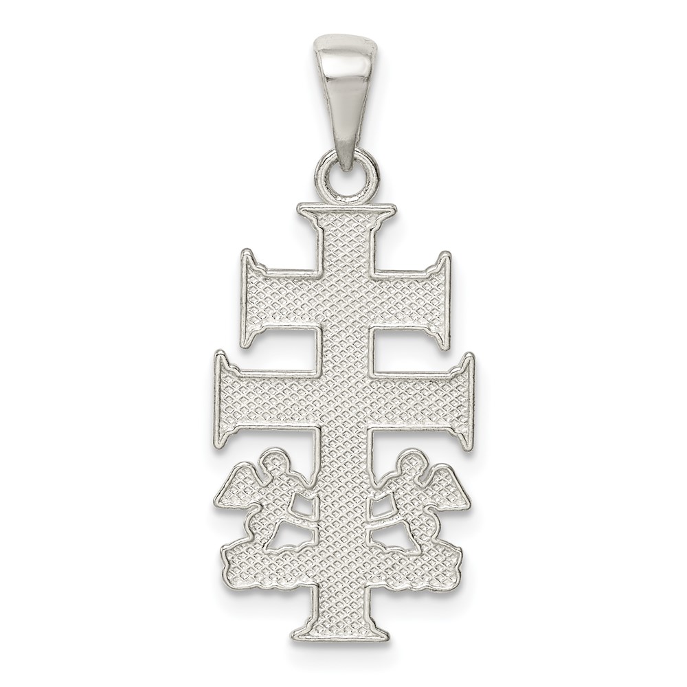 Sterling Silver Polished Caravaca Double Cross w/Angels Crucifix Pendant