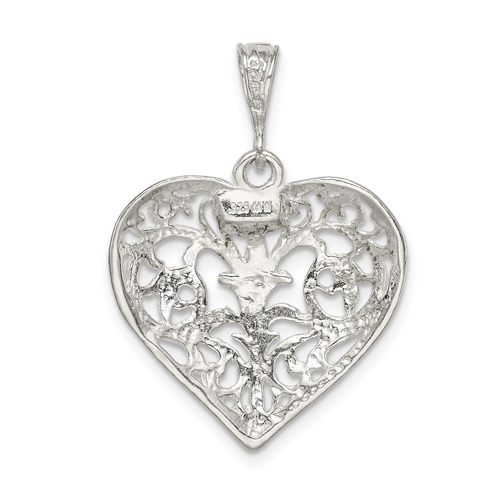 Sterling Silver Polished Filigree Heart Pendant