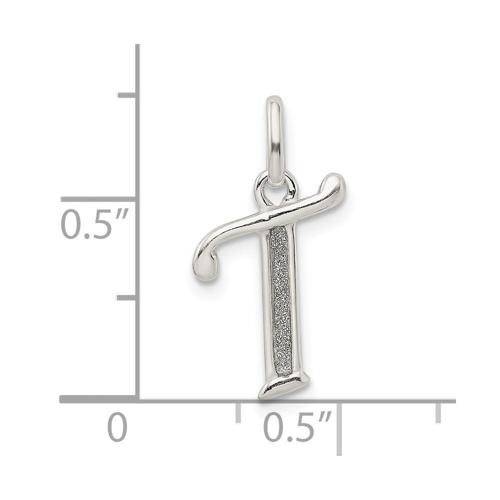 Sterling Silver Polished Glitter Enamel Letter T Initial Charm