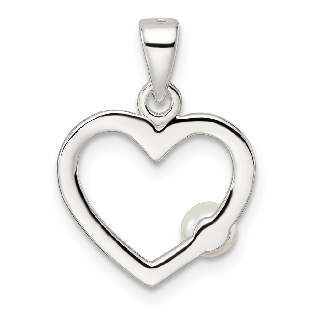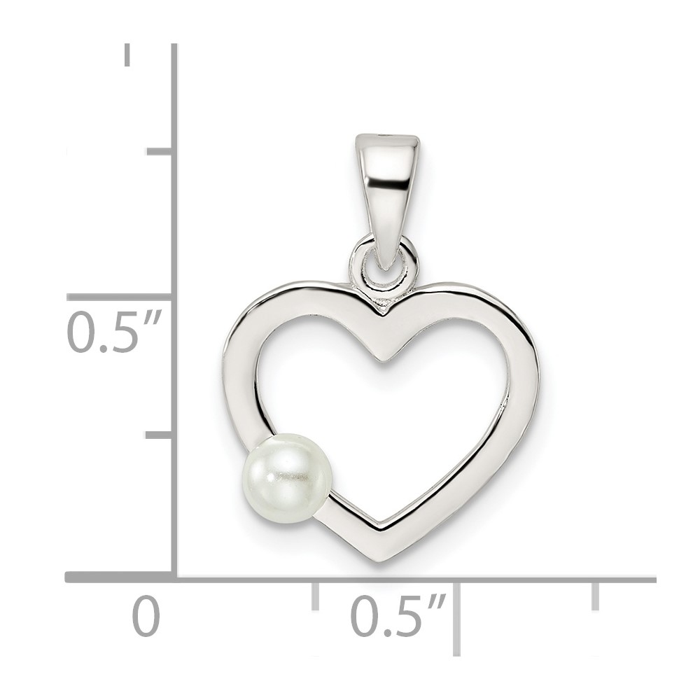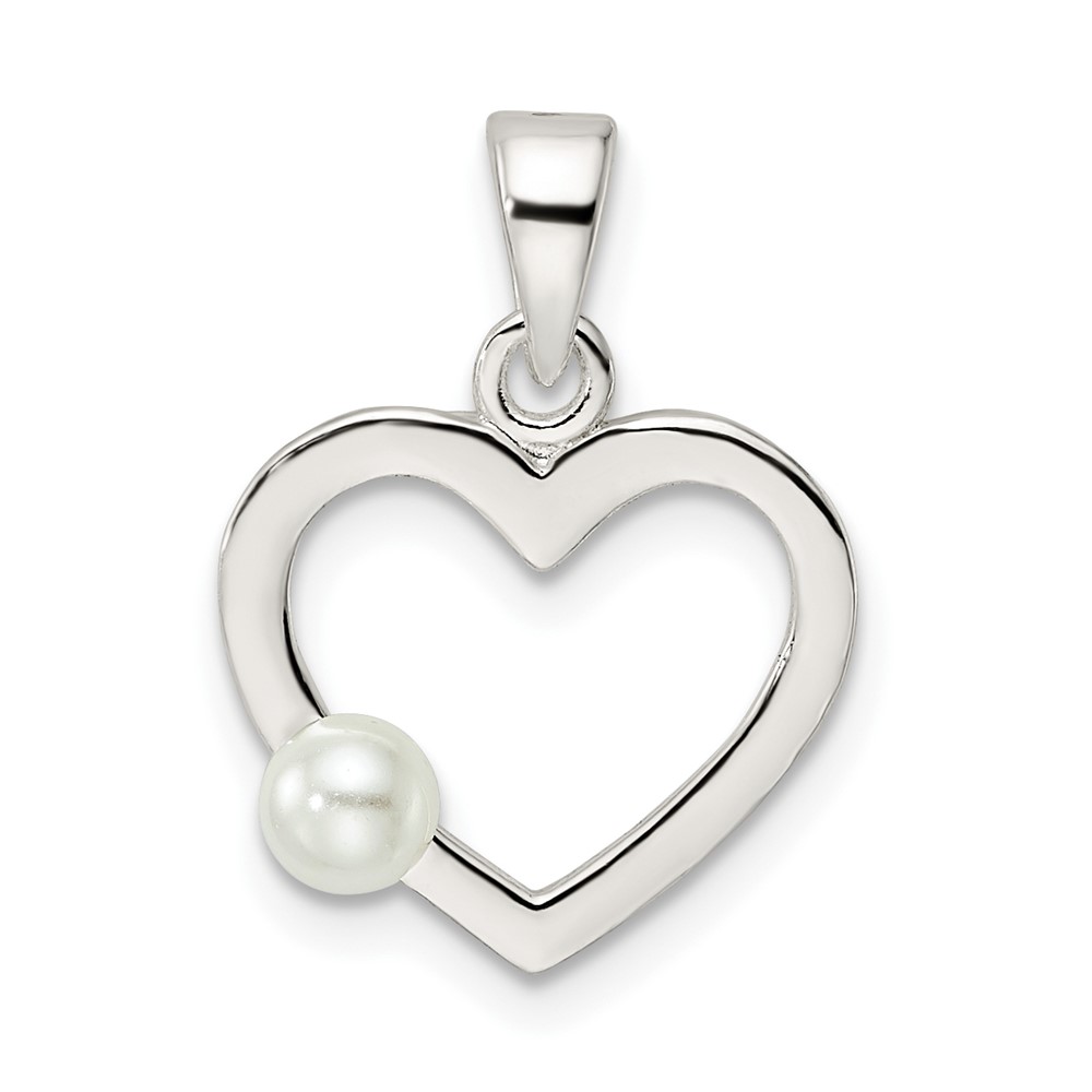 Sterling Silver Polished Imitation Pearl Heart Pendant