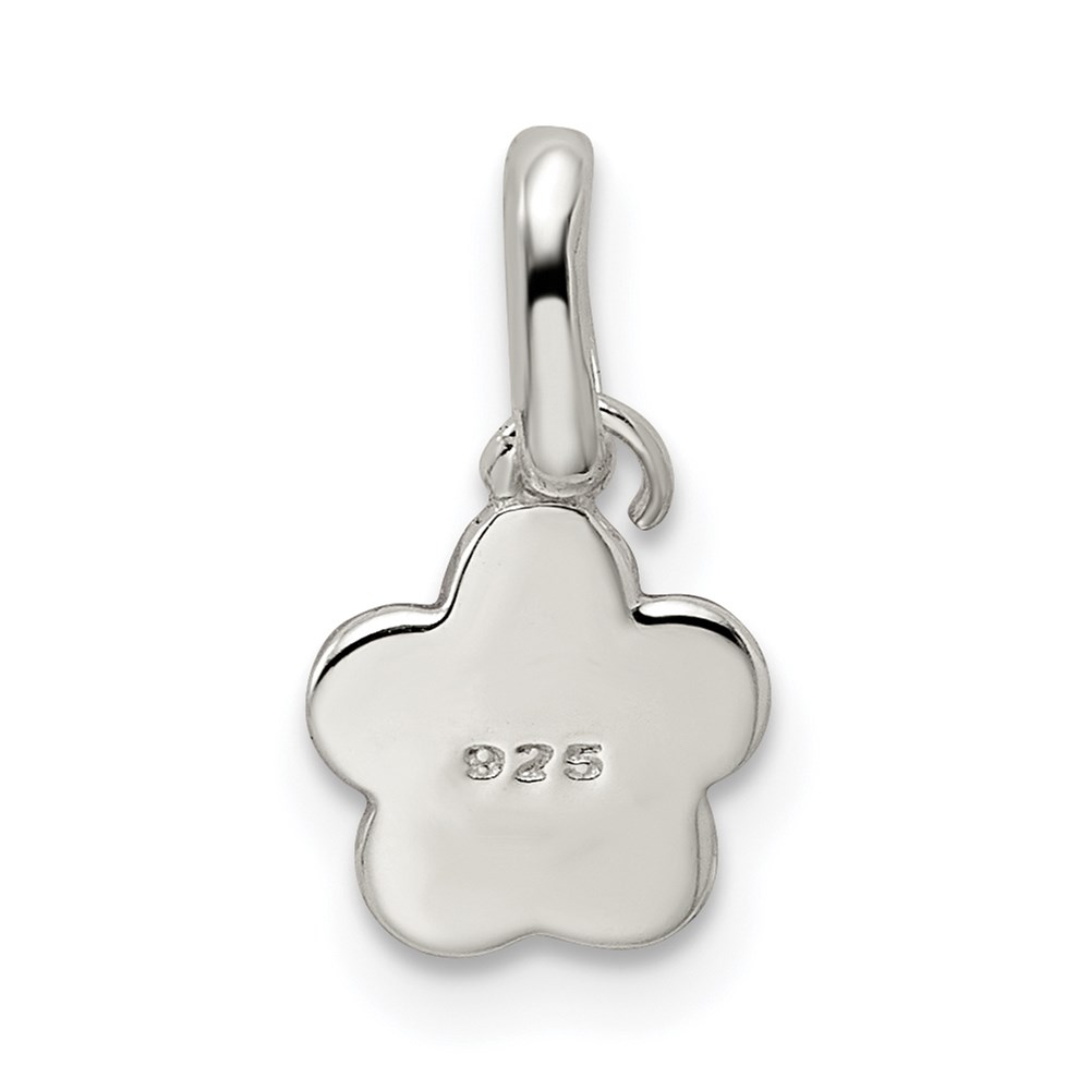 Sterling Silver Polished Pink Enameled Flower Children’s Pendant