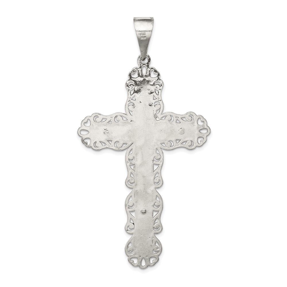 Sterling Silver Polished & Textured Large Floral Cross w/Jesus Pendant
