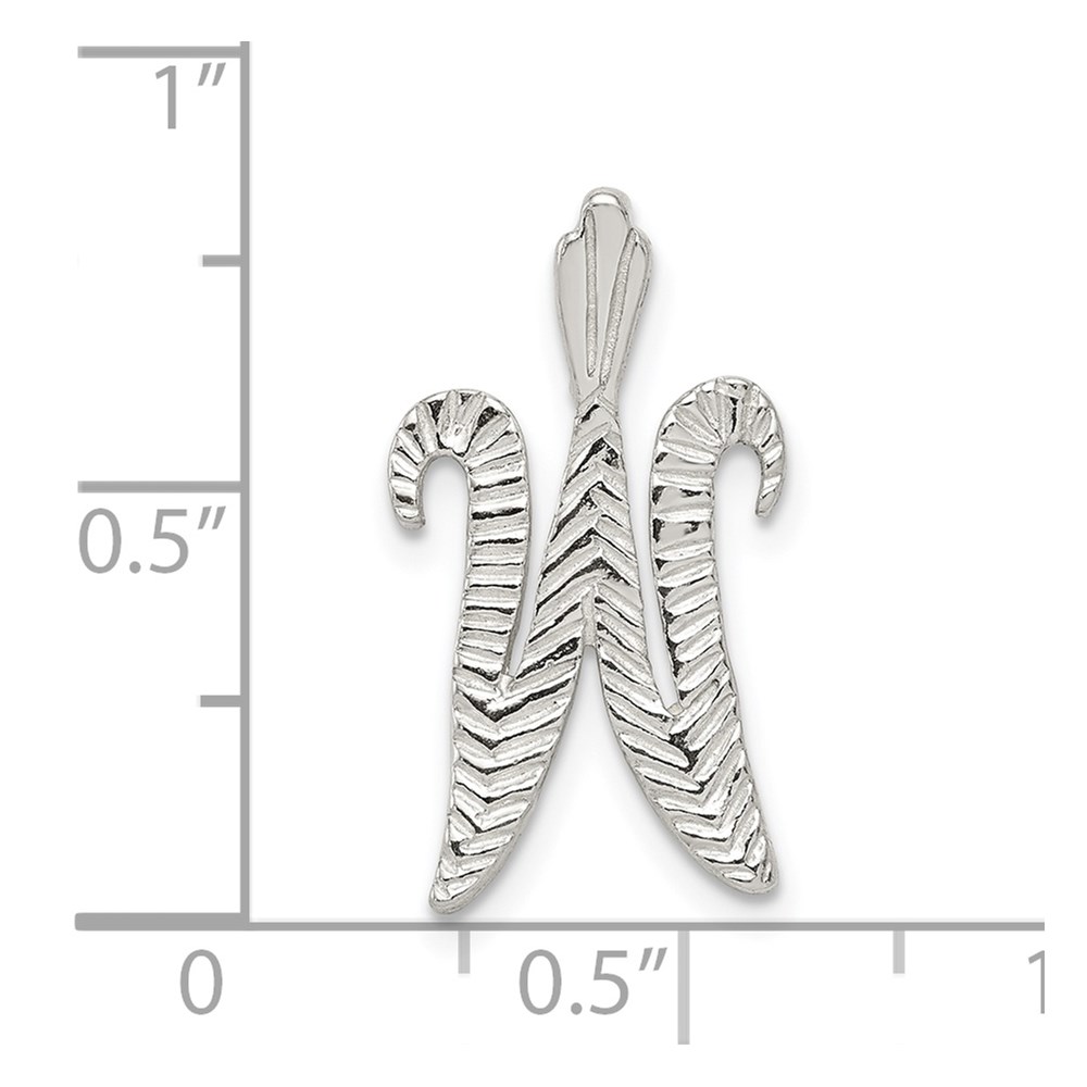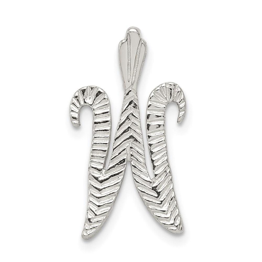 Sterling Silver Polished & Textured Letter W Initial Chain Slide