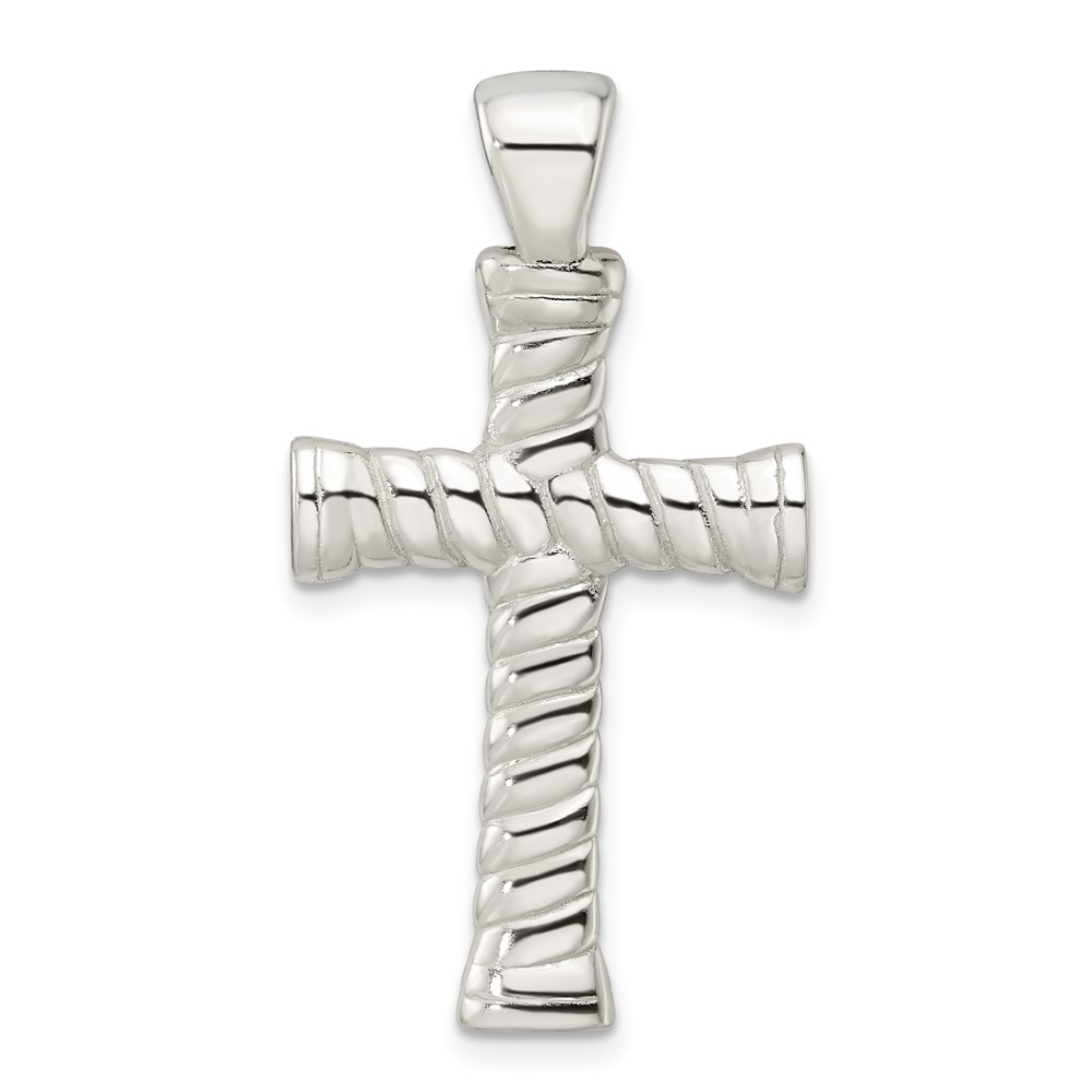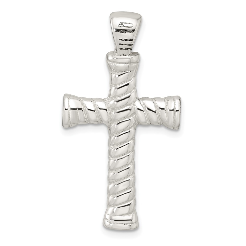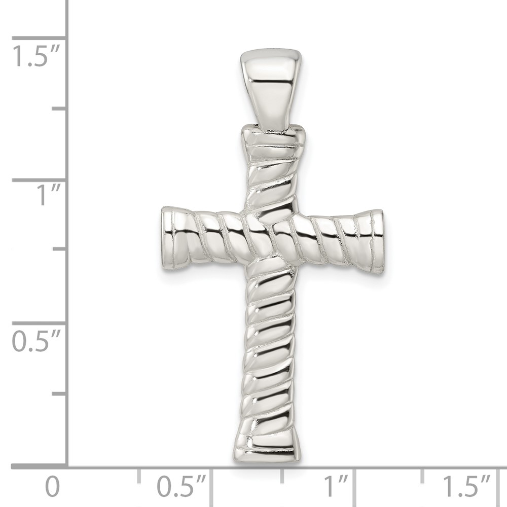 Sterling Silver Polished Twisted Hollow Large Latin Cross Pendant