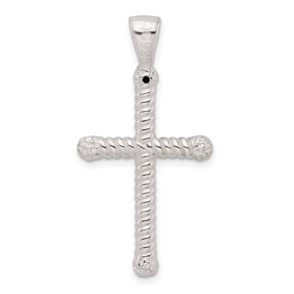 Sterling Silver Polished Twisted Hollow Latin Cross Pendant