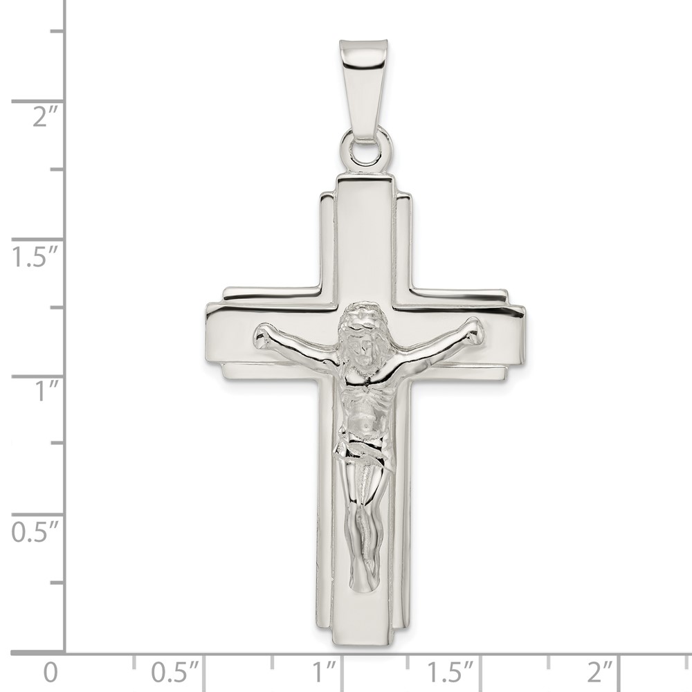 Sterling Silver Polished w/Side Lines Large Crucifix Pendant
