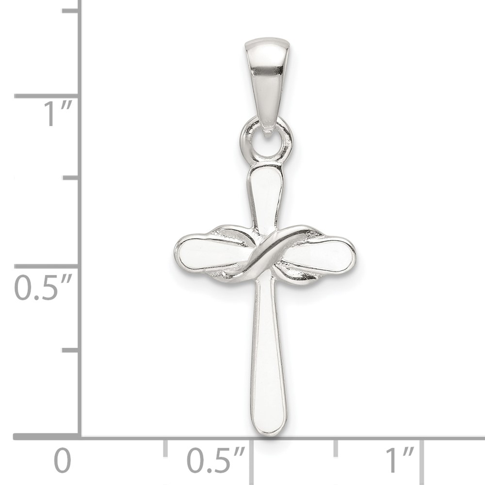 Sterling Silver Polished White Enamel Infinity Cross Pendant
