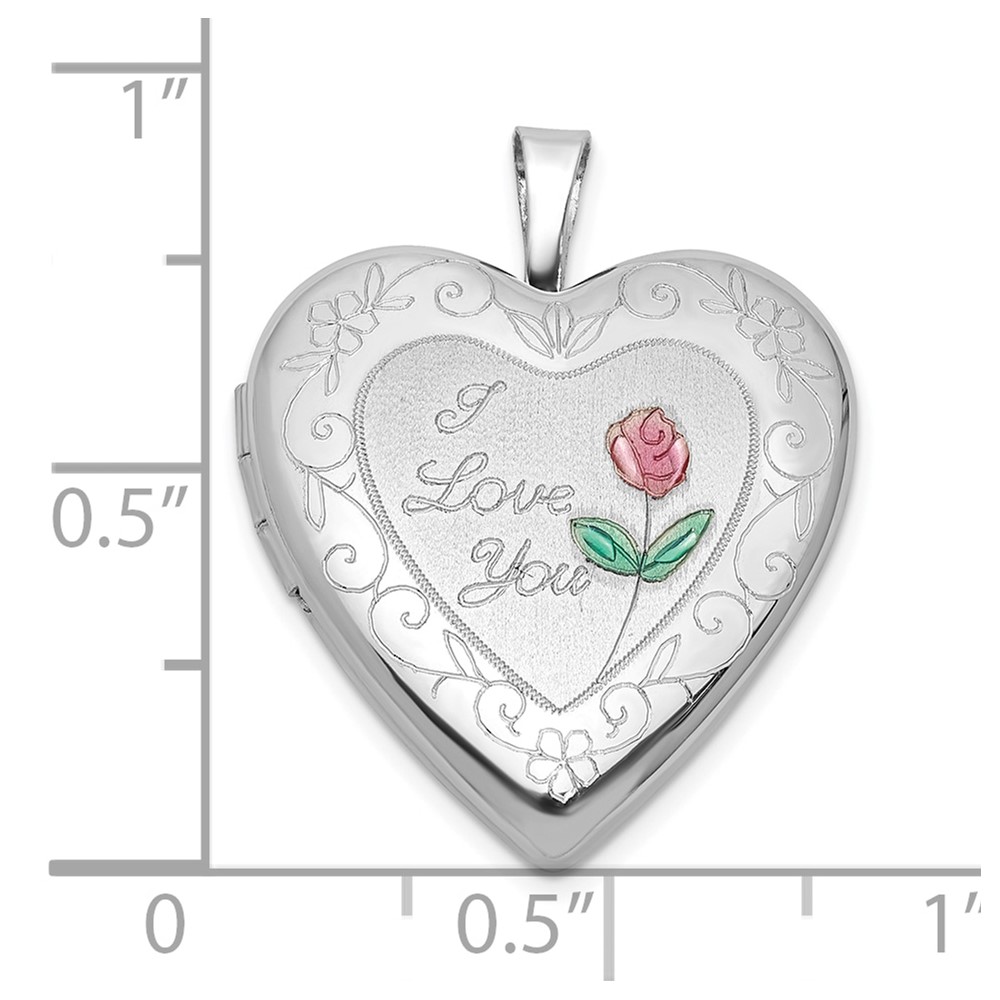 Sterling Silver Rh-plate Polish/Satin Epoxy 20mm I Love You Rose Locket