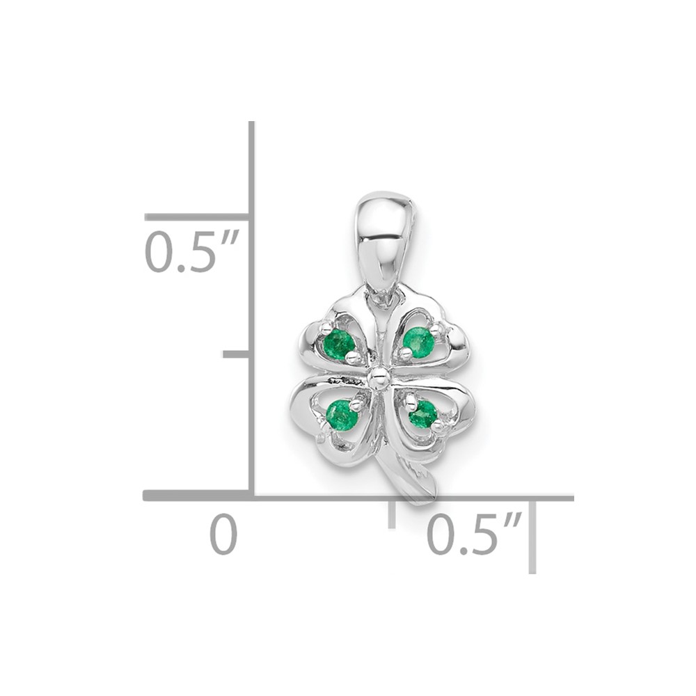 Sterling Silver RH-plated Emerald Four Leaf Clover Pendant
