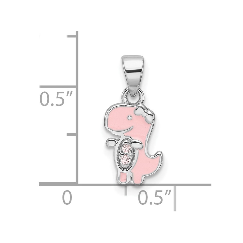 Sterling Silver RH-plated Pink Enamel & CZ Dinosaur Children’s Pendant