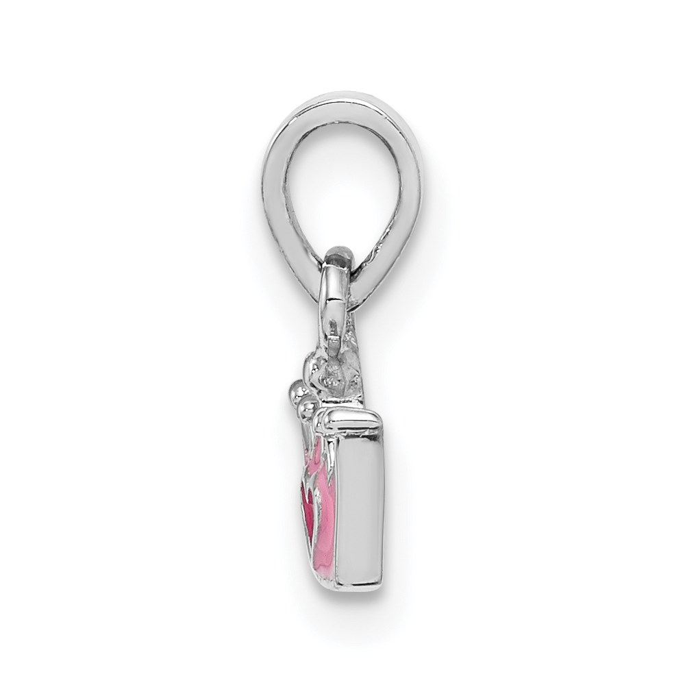 Sterling Silver RH-plated Pink Enameled Heart Crown Children’s Pendant