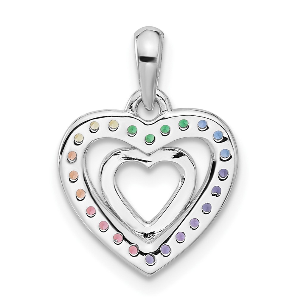 Sterling Silver RH-plated Rainbow Crystal Double Heart Children’s Pendant