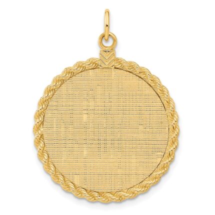 Sterling Silver Rhod-plated Eng. Rnd w/Rope Polish Front/Satin Back Disc