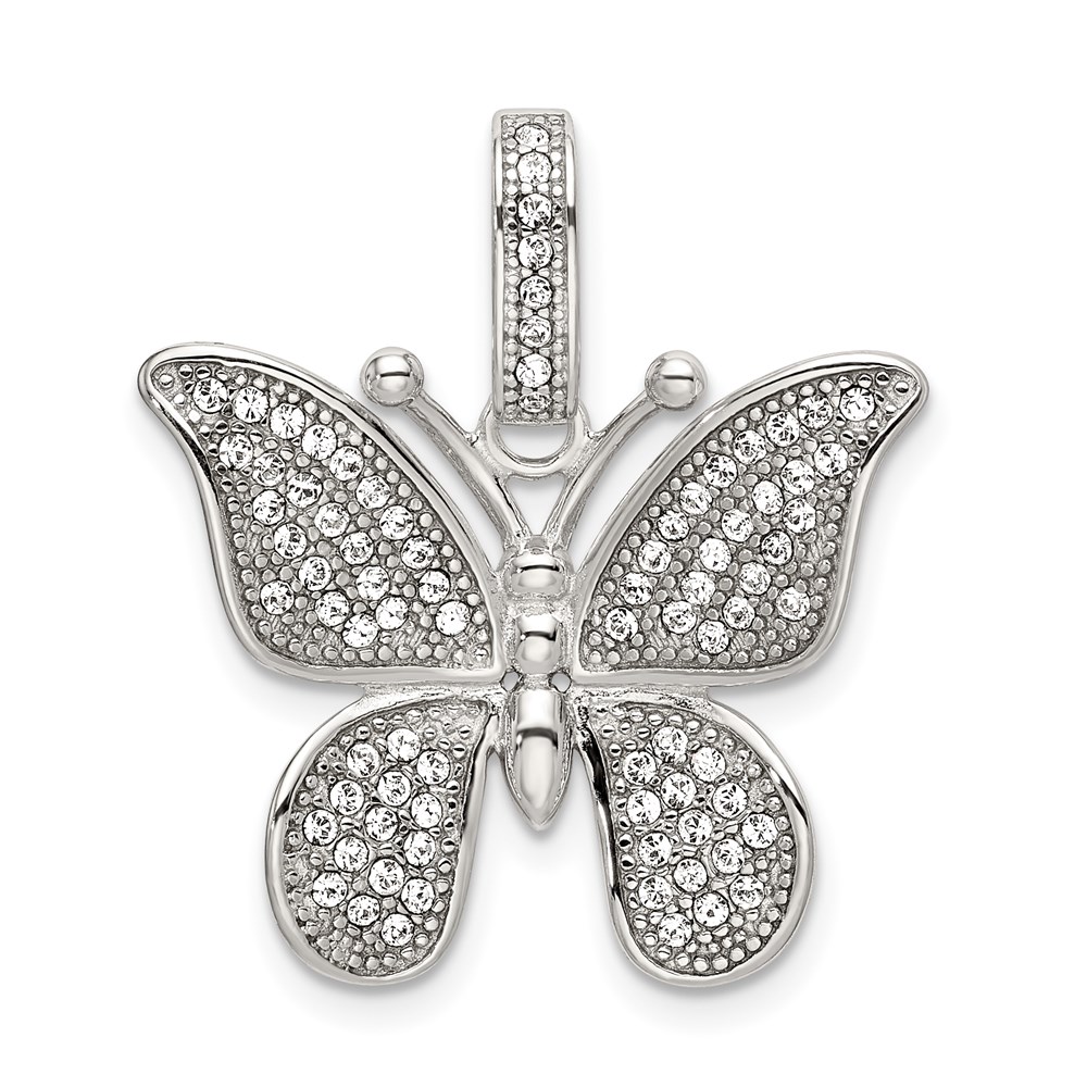 Sterling Silver Rhod-plated Polished Preciosa Crystal Butterfly Pendant