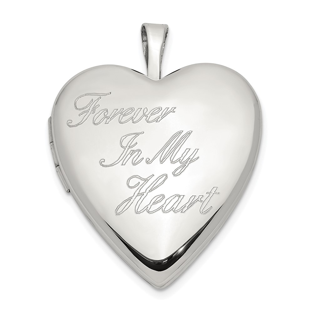 Sterling Silver Rhod-pltd 20mm FOREVER IN MY HEART Heart Locket
