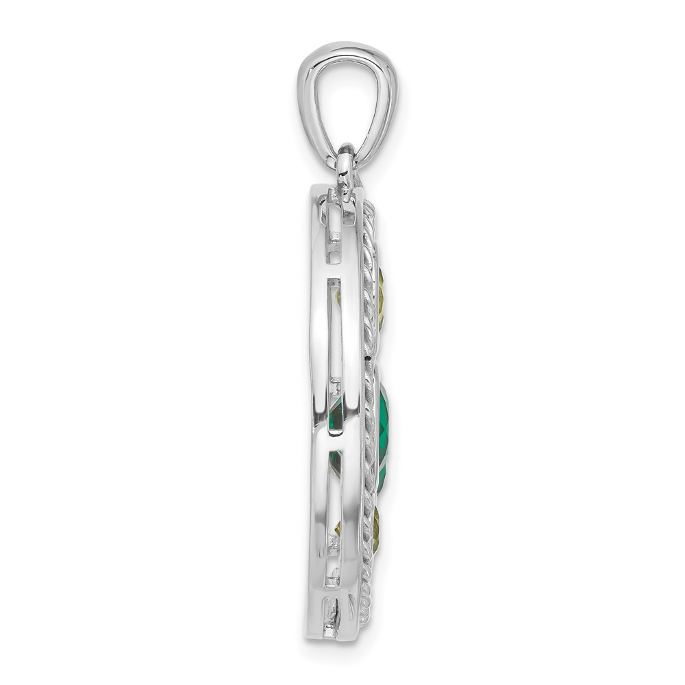 Sterling Silver Rhodium Cr. Emerald Peridot and White Topaz Circle Pendant