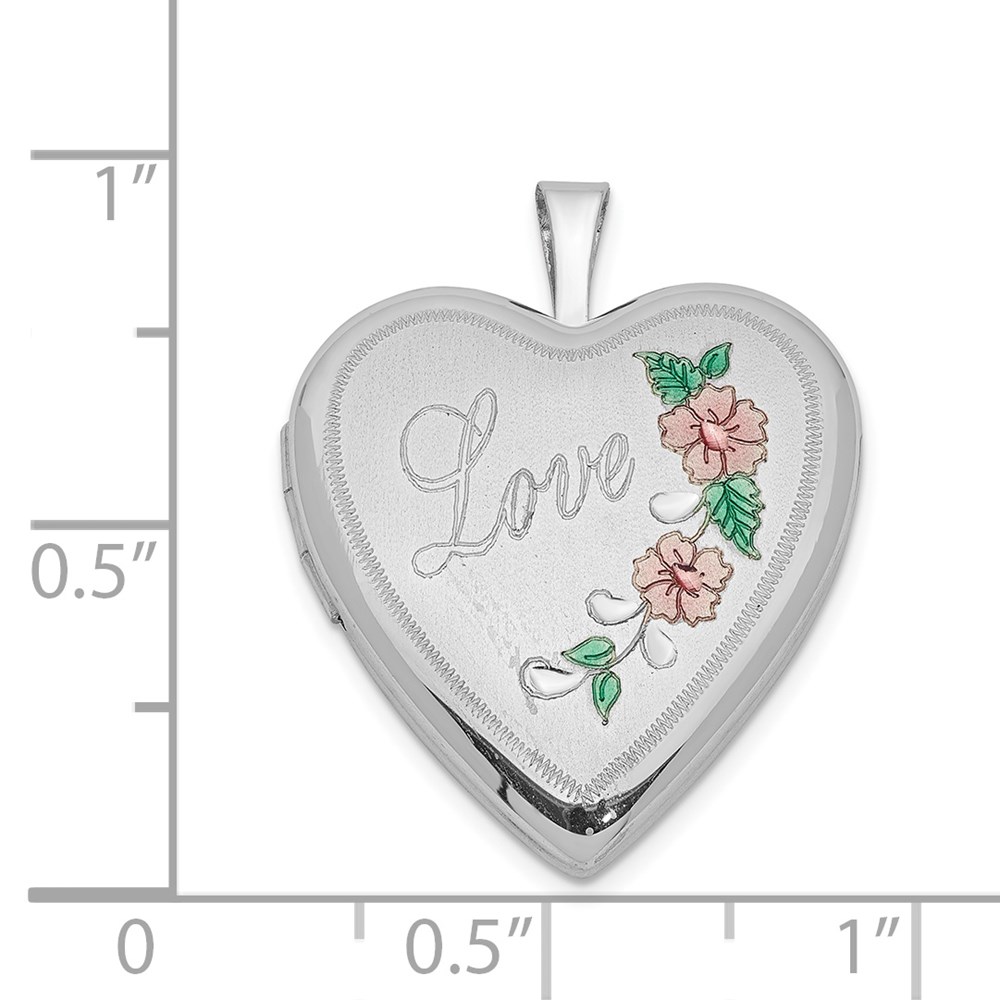 Sterling Silver Rhodium-plated 20mm D/C & Enameled Love Heart Locket