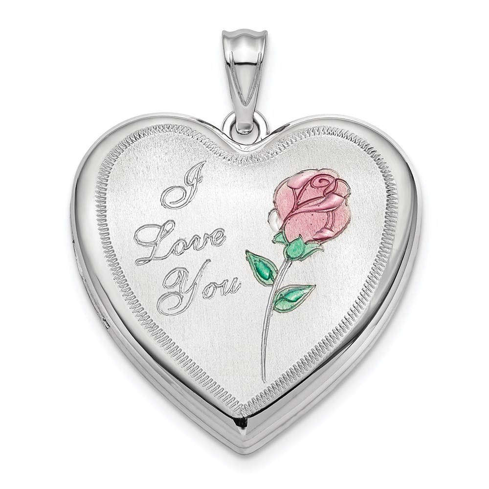 Sterling Silver Rhodium-plated 24mm Enameled Rose Ash Holder Heart Locket