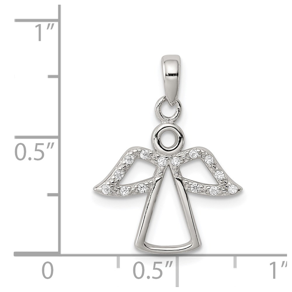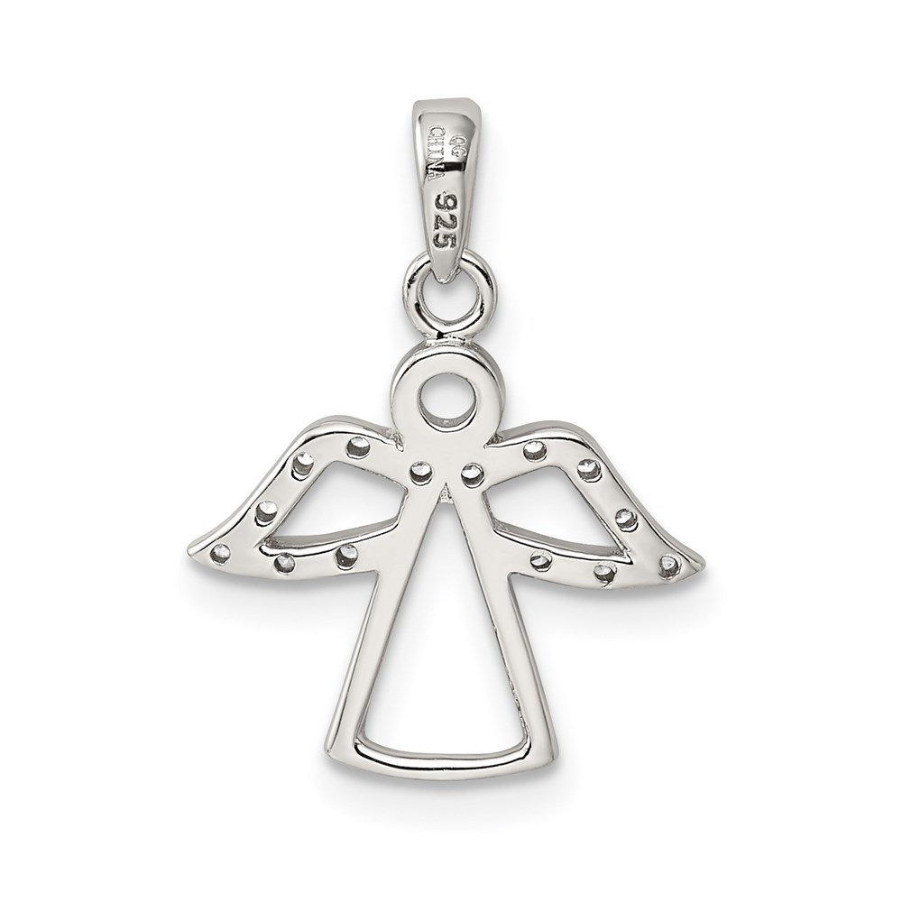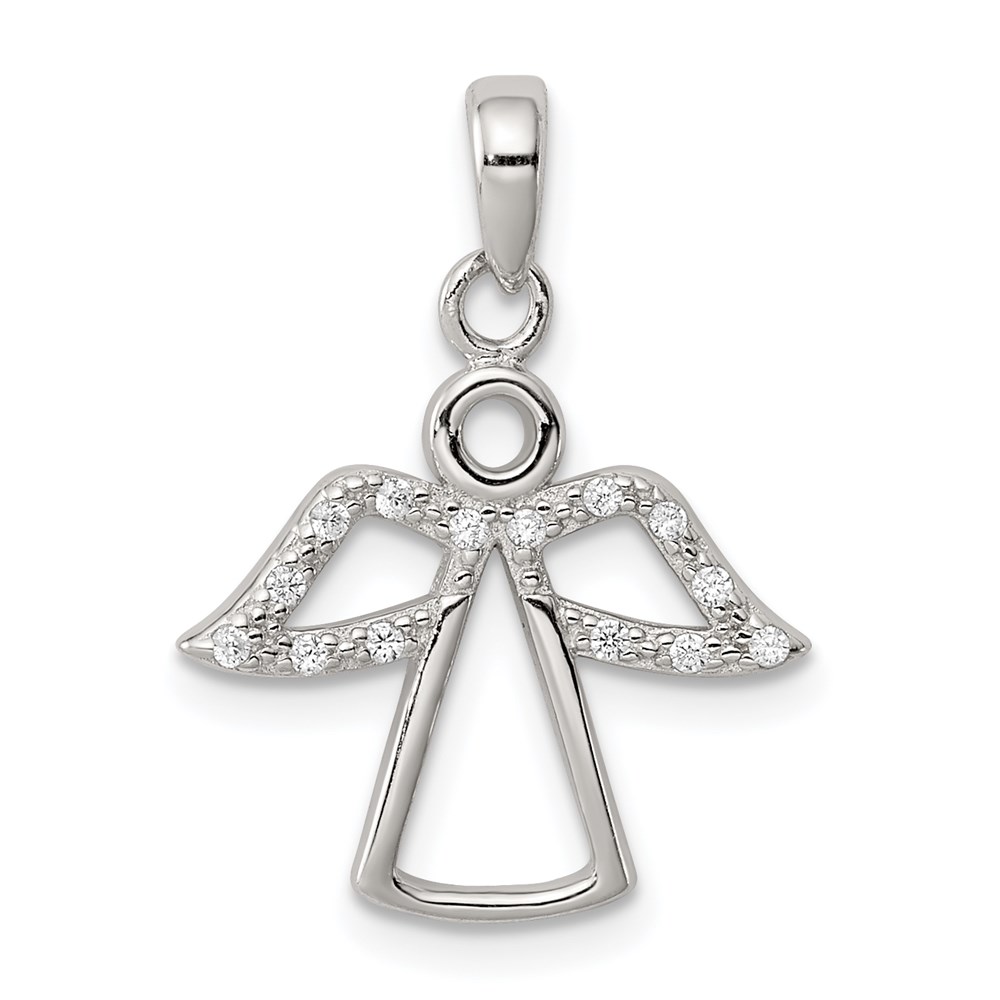 Sterling Silver Rhodium-plated Angel w/ CZ Wings Pendant