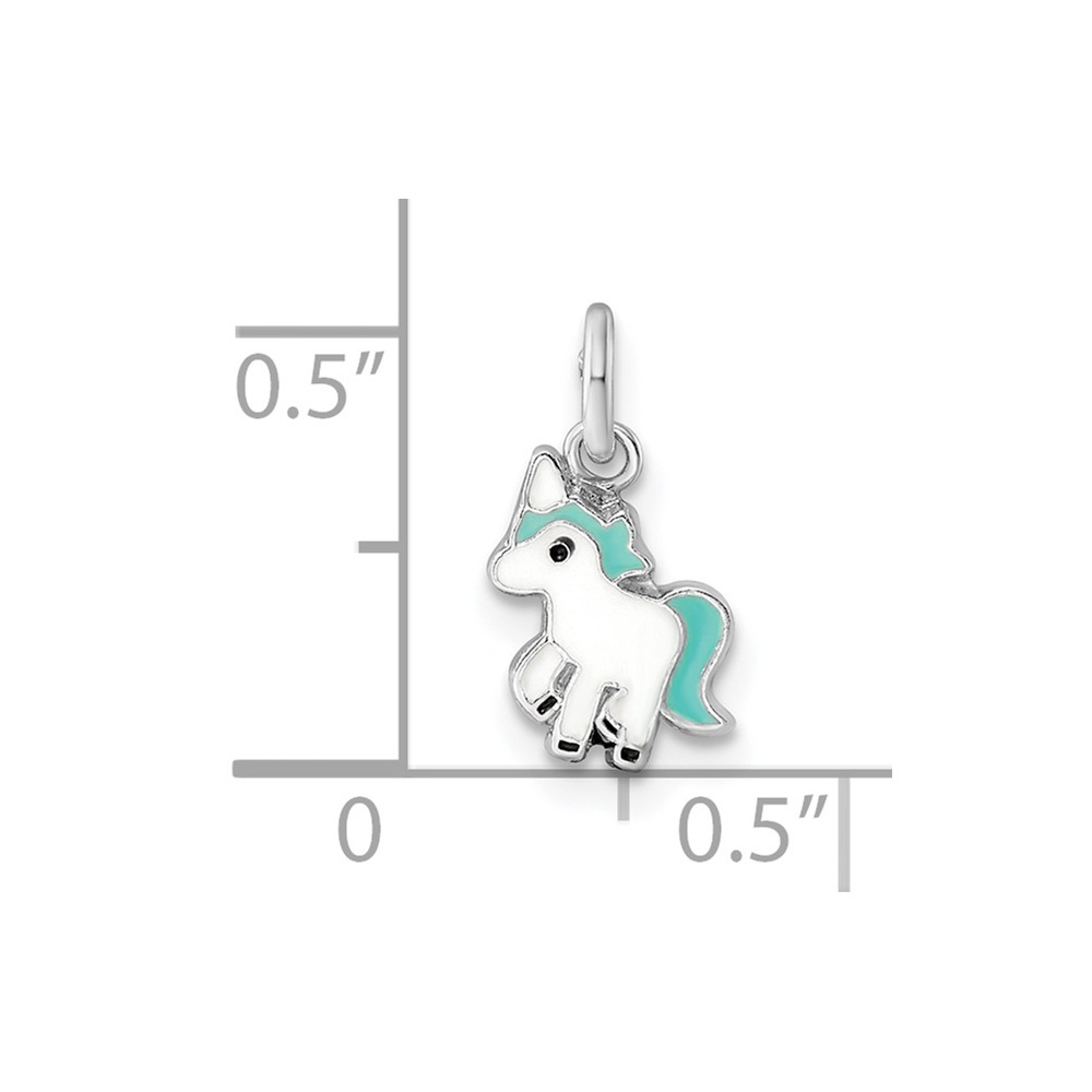 Sterling Silver Rhodium-plated Blue, White & Black Enameled Unicorn Children’s Pendant