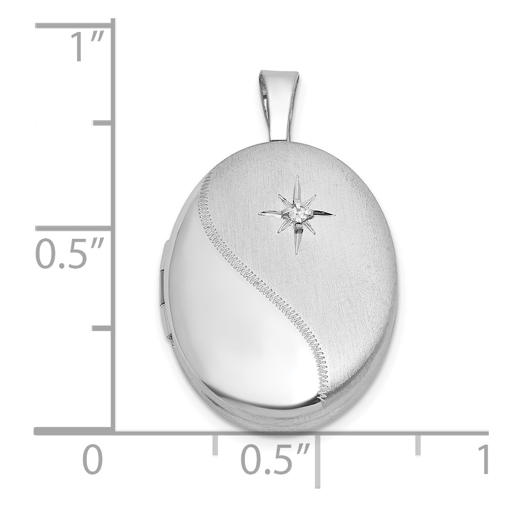Sterling Silver Rhodium-plated Brushed And Polished 1/20 carat Diamond 16mm Oval Locket