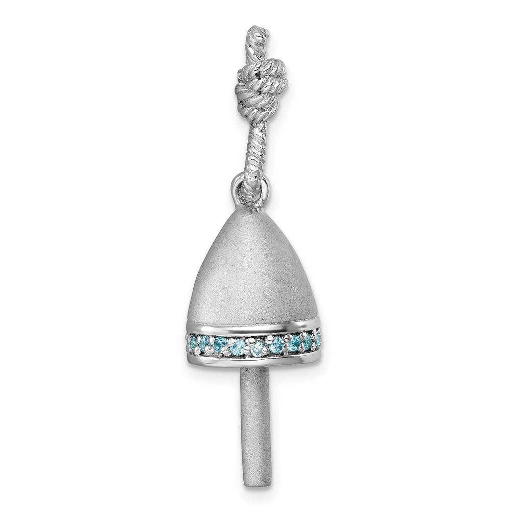 Sterling Silver Rhodium-Plated Brushed Blue CZ Buoy Pendant