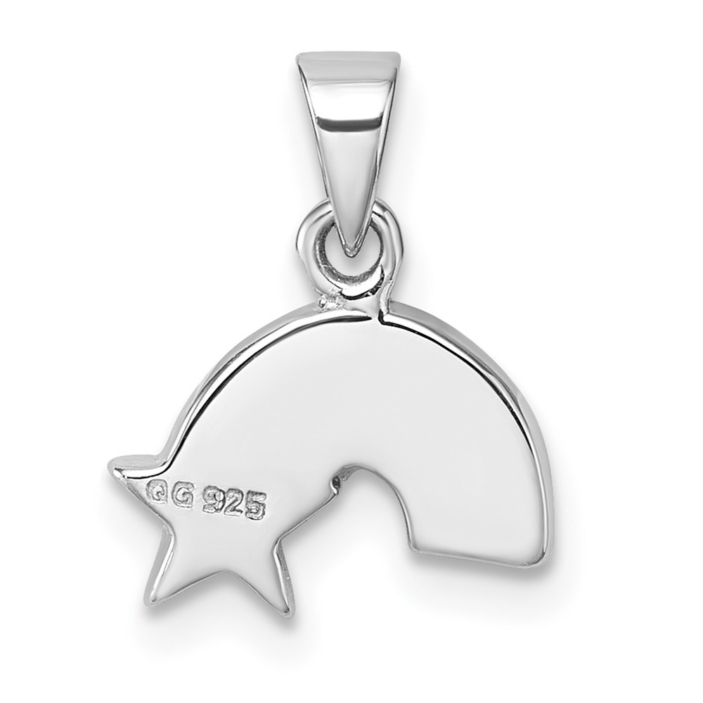 Sterling Silver Rhodium-plated Children’s Multicolor Enamel Rainbow with Star Pendant