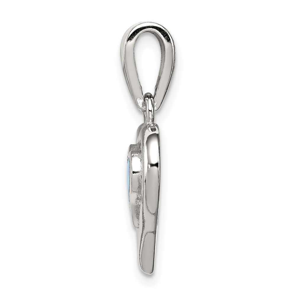 Sterling Silver Rhodium-plated Created Blue Opal Inlay Heart Pendant