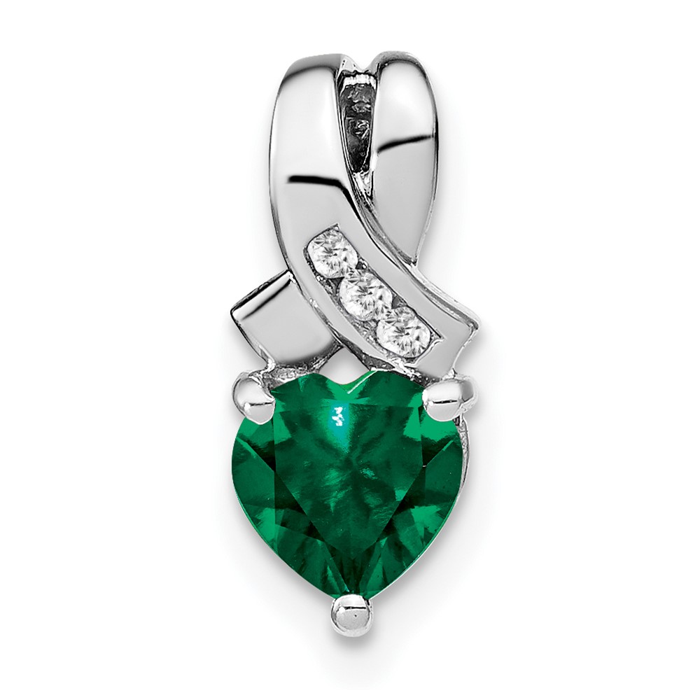 Sterling Silver Rhodium-plated Created Emerald/Diamond Pendant