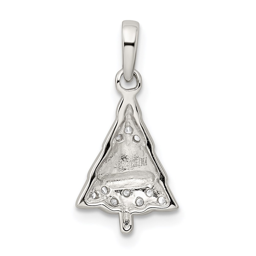 Sterling Silver Rhodium-plated CZ and Enameled Christmas Tree Pendant