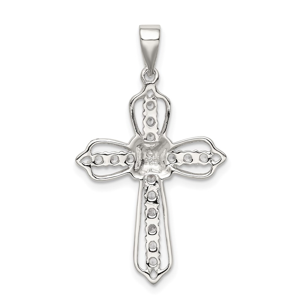 Sterling Silver Rhodium-plated CZ Cross Pendant