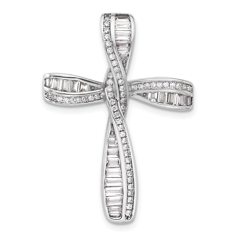 Sterling Silver Rhodium-plated CZ Cross Pendant Slide