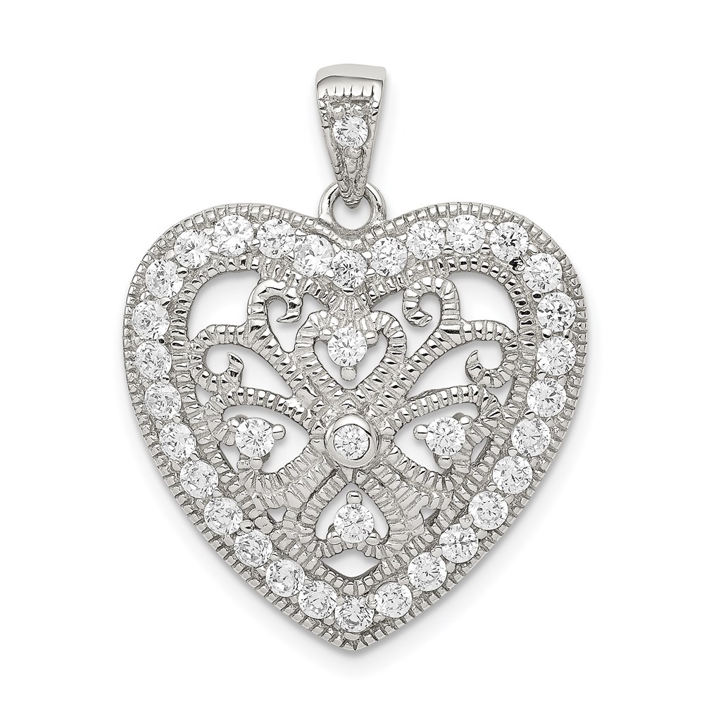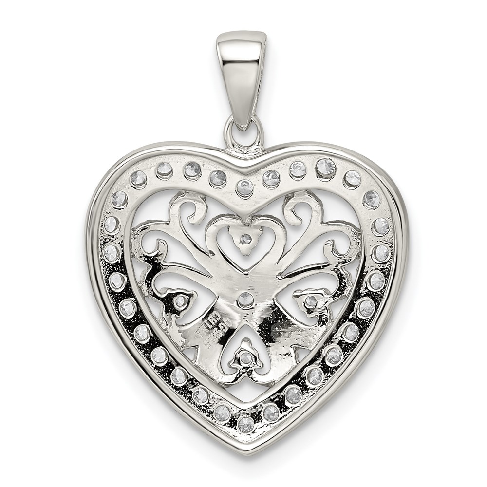 Sterling Silver Rhodium-plated CZ Filigree Heart Pendant