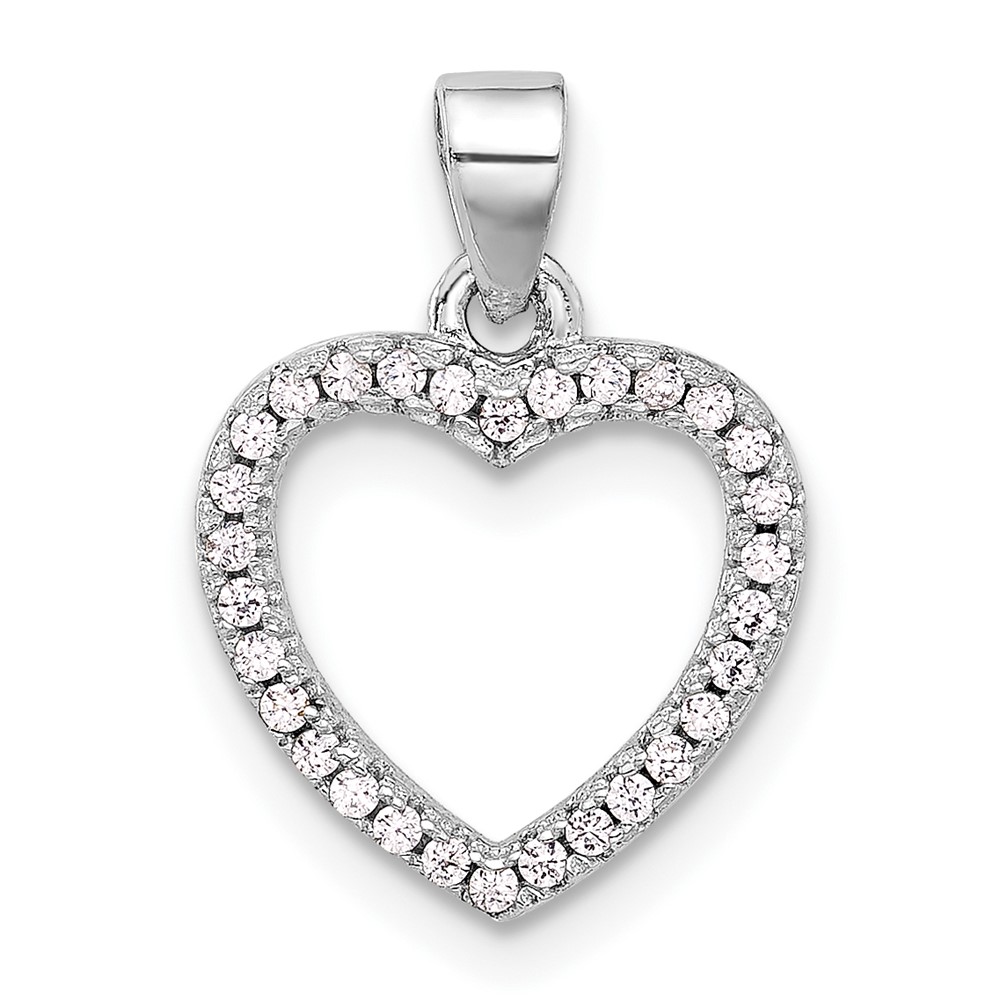 Sterling Silver Rhodium-plated CZ Heart Pendant