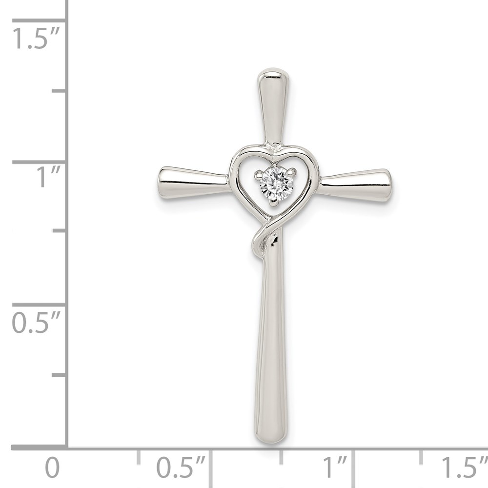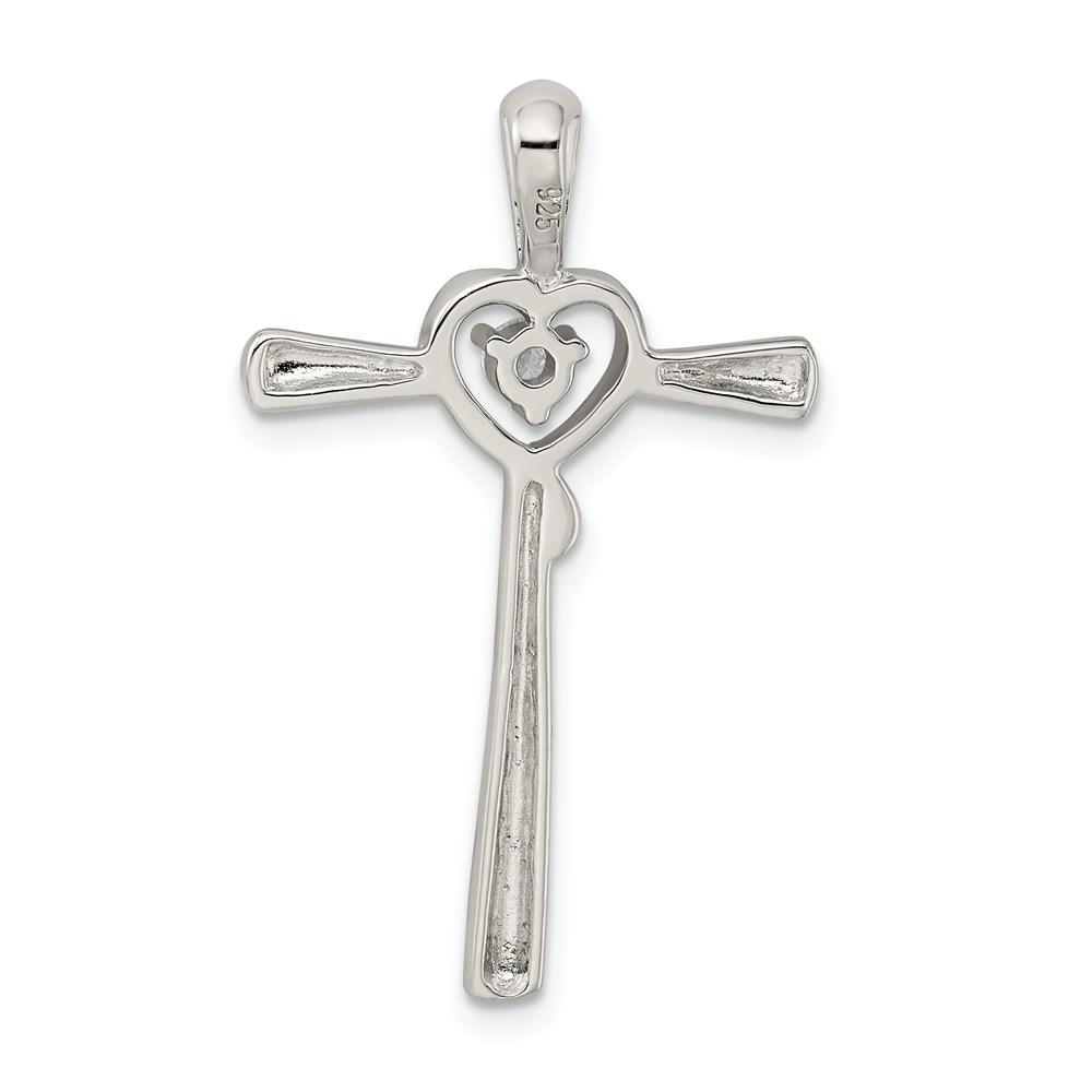 Sterling Silver Rhodium-plated CZ in Heart Cross Pendant