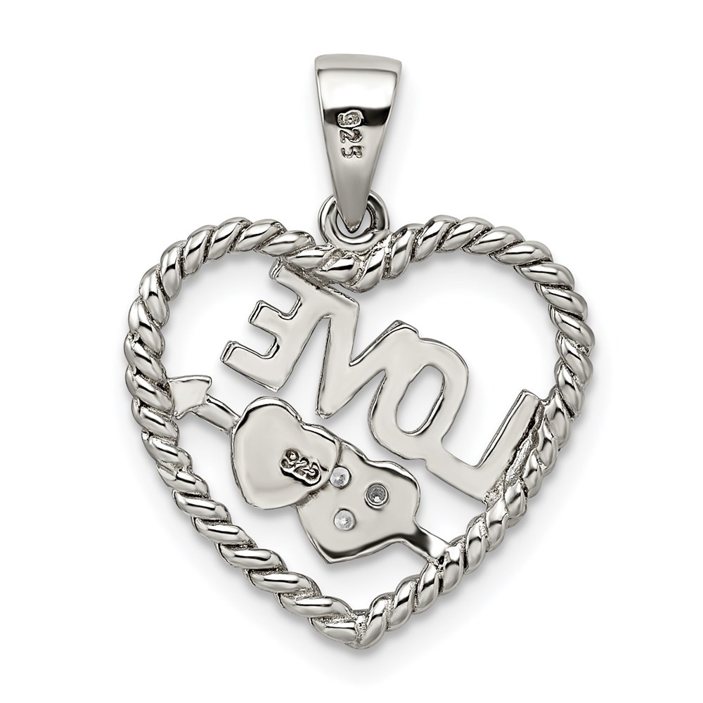 Sterling Silver Rhodium-plated CZ Love Heart Pendant