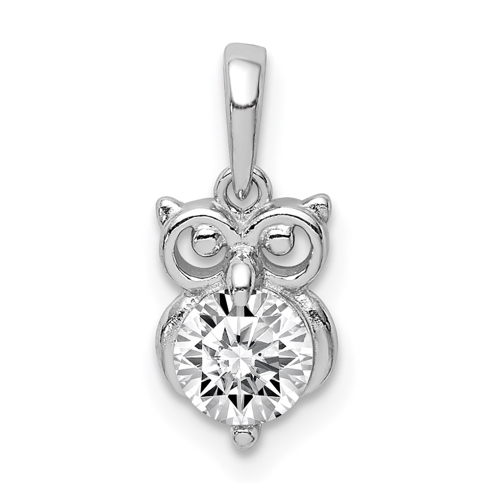 Sterling Silver Rhodium Plated CZ Owl Pendant