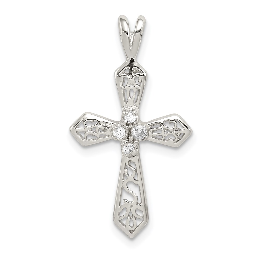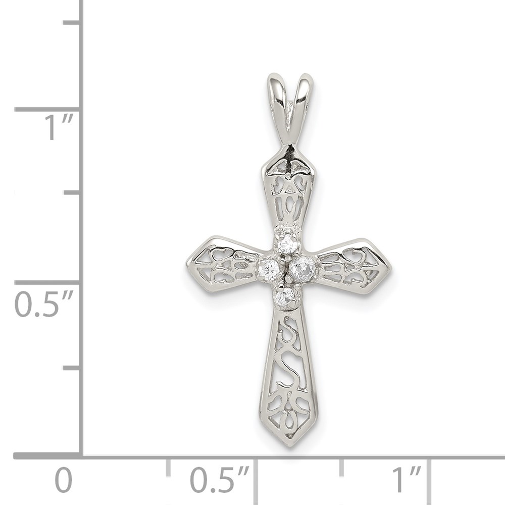 Sterling Silver Rhodium-plated CZ Passion Cross Pendant