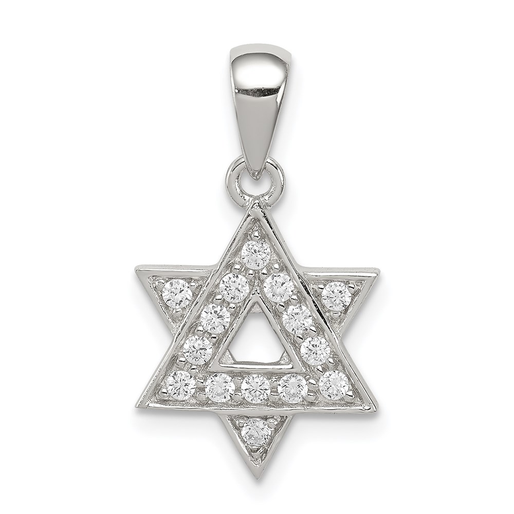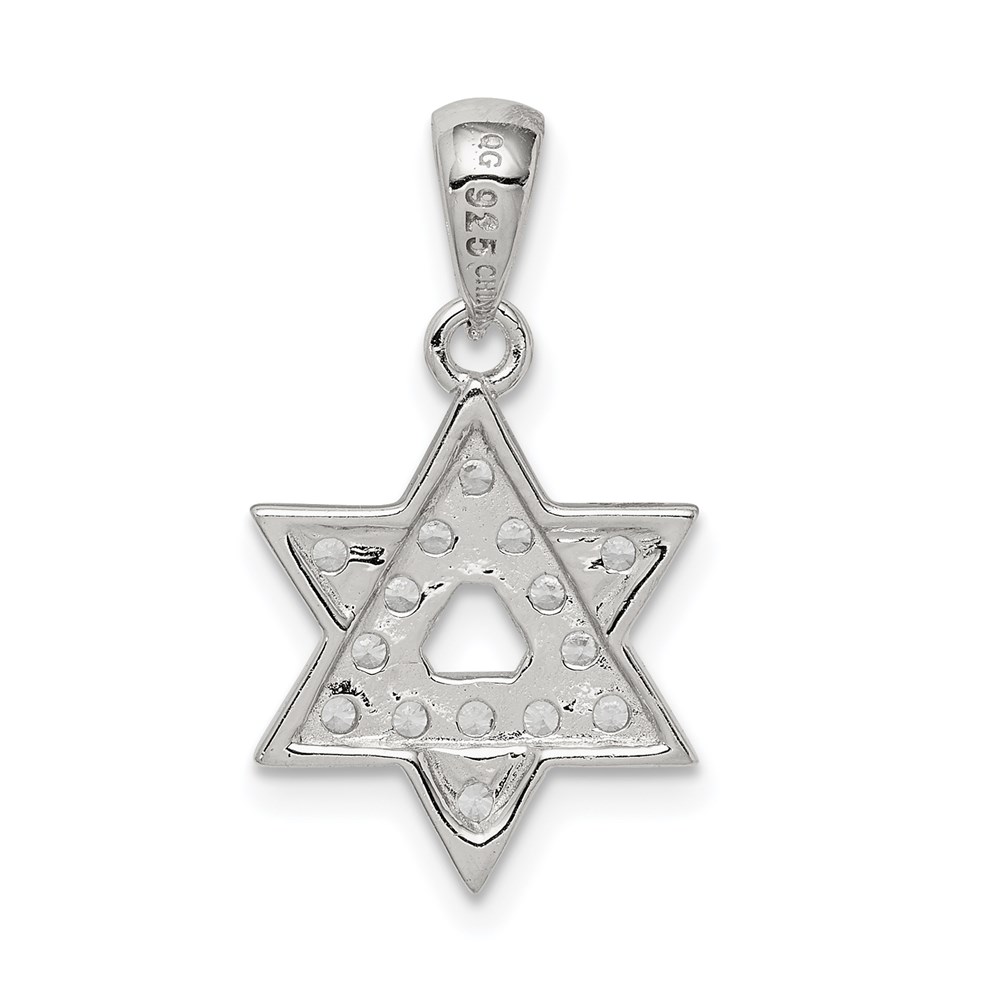Sterling Silver Rhodium-plated CZ Star of David Pendant