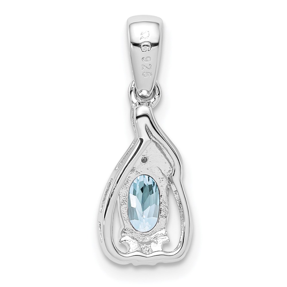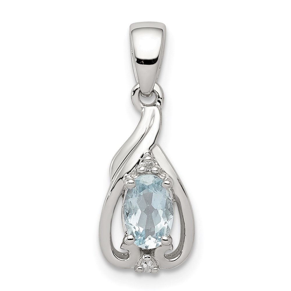 Sterling Silver Rhodium Plated Dia. & Aquamarine Oval Pendant