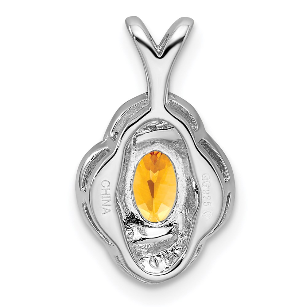 Sterling Silver Rhodium-plated Diam. & Citrine Pendant